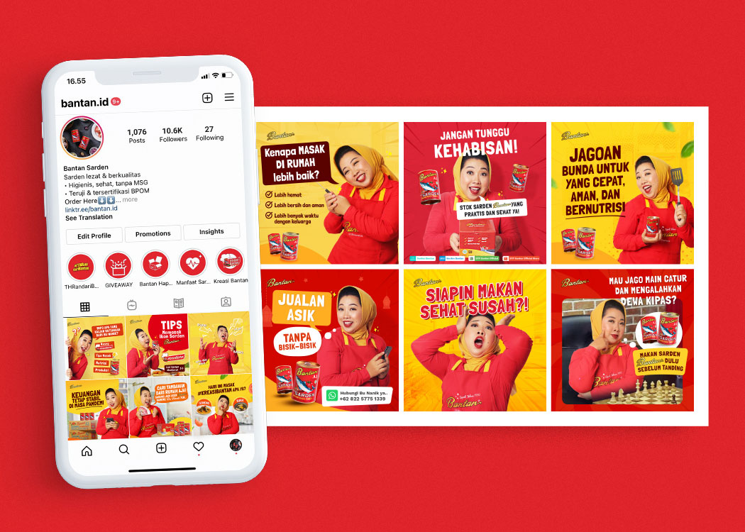Persona Bu Nanik digunakan untuk berbagai konten di sosial media brand Bantan Sarden, juga untuk fitur GIF .